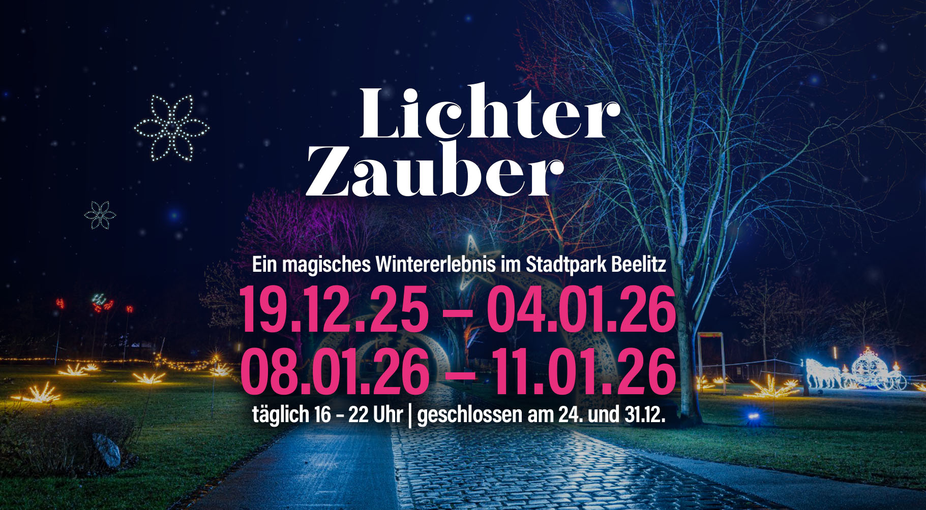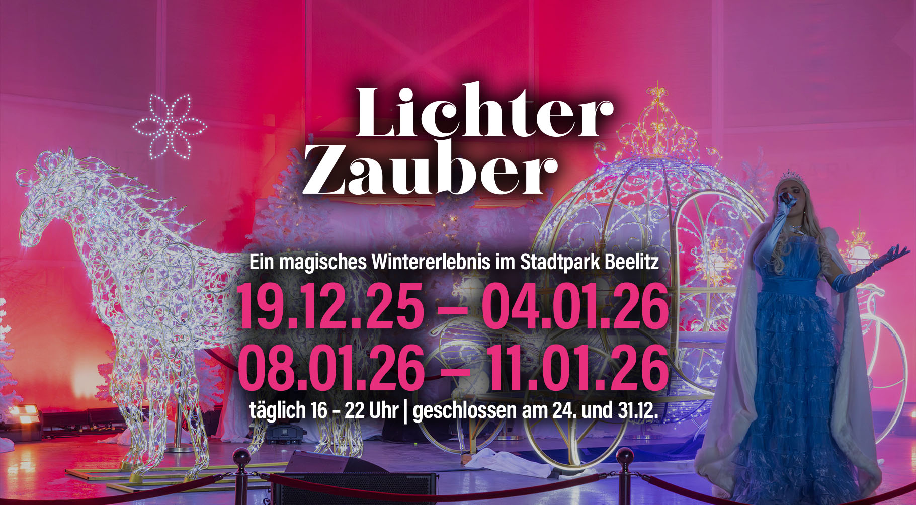 Vom 19. Dezember 2025 bis zum 4. Januar 2026 sowie vom 8. bis 11. Januar 2026 verwandelt sich der Stadtpark Beelitz in eine faszinierende Landschaft voller Licht, Klang und Emotionen.